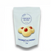 Crunchy biscuits with coconut flakes and bursts of sweet cherry.